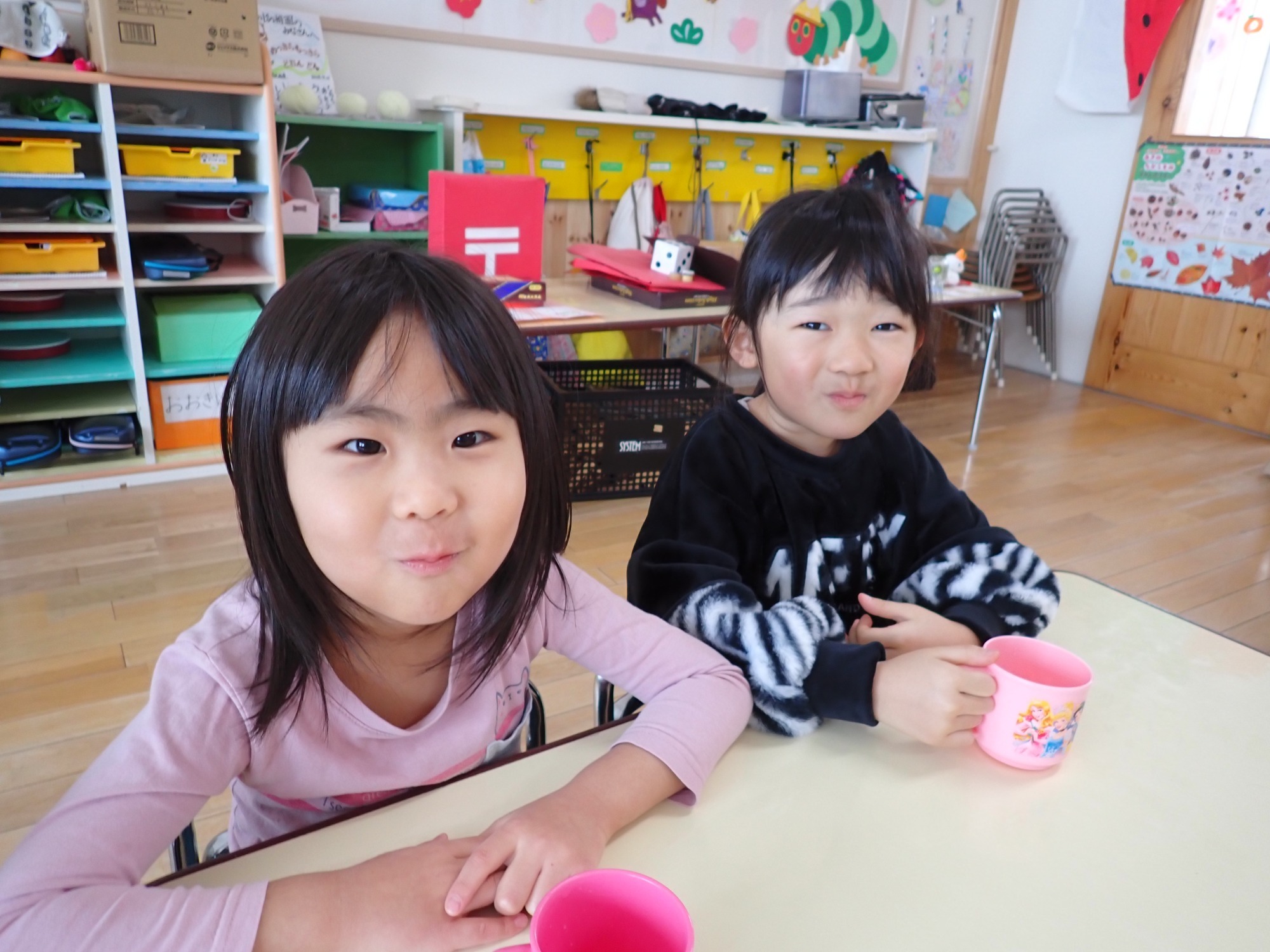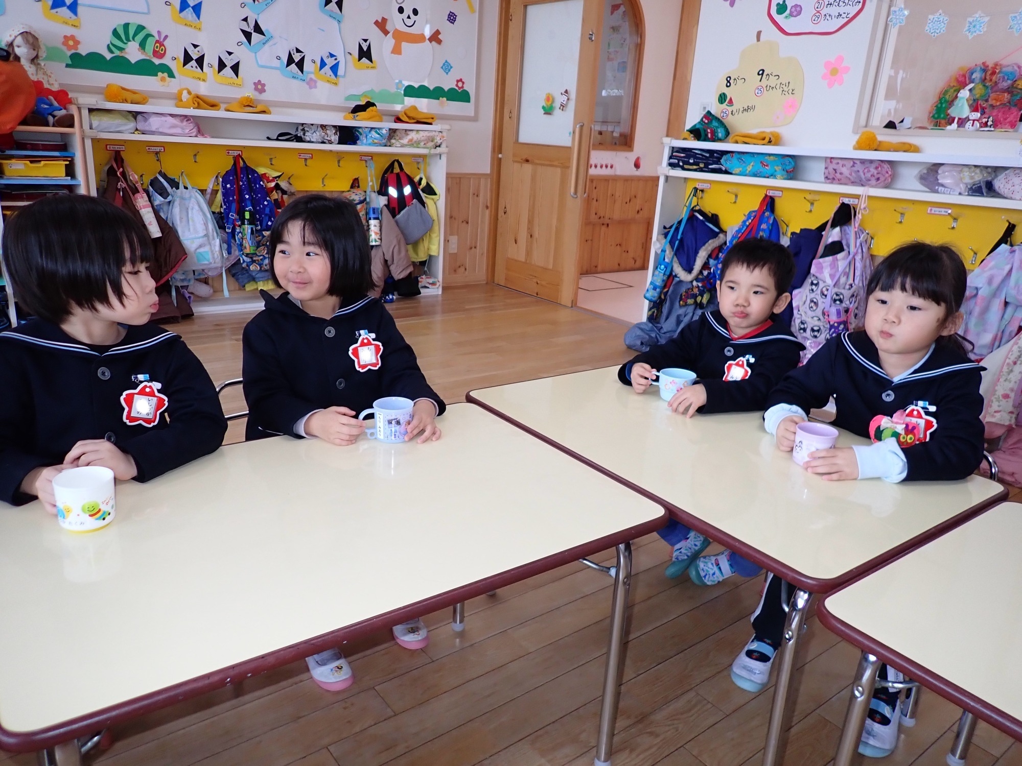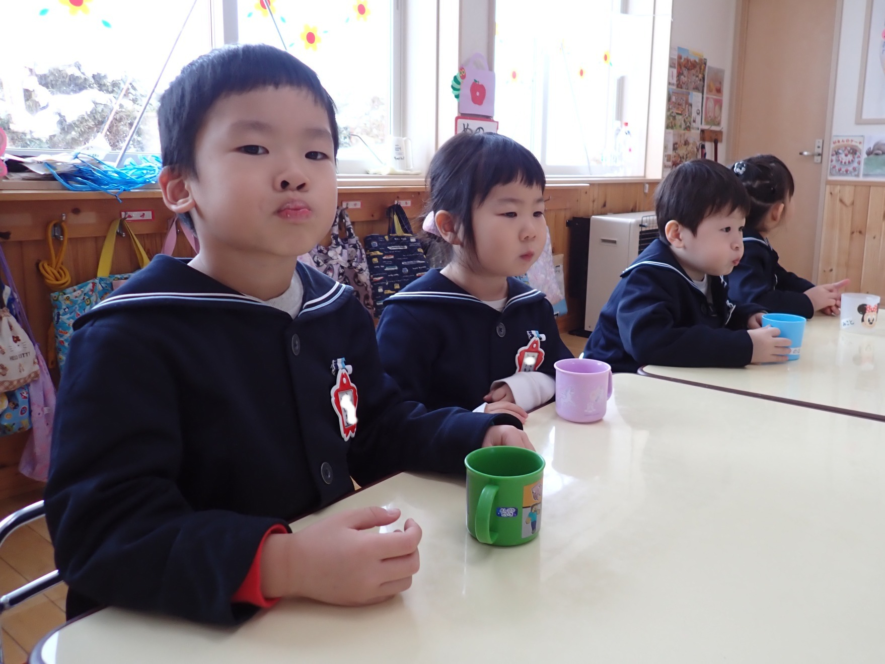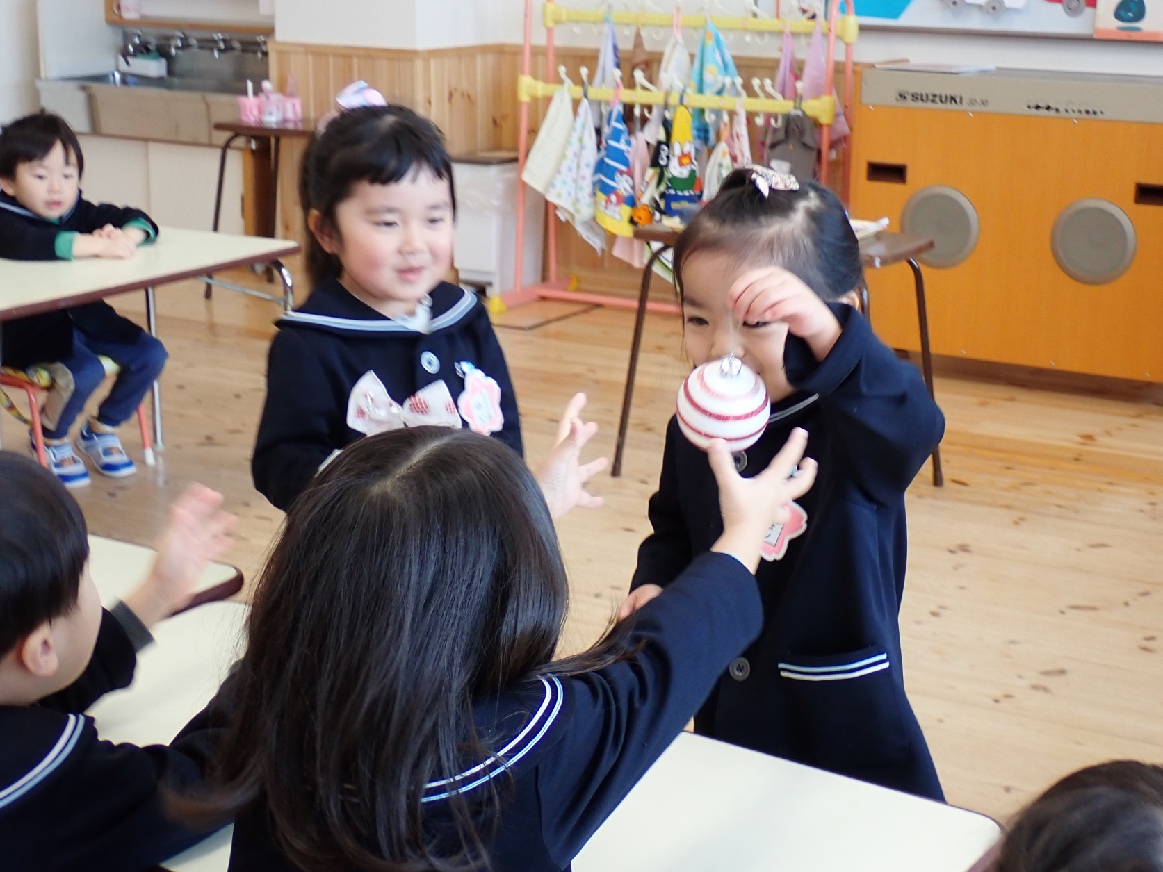 入園のお友だちは今日から旭川幼稚園のよいこになりました。たくさん、遊びましょうね! 進級のお友だちは一つ、大きくなりました。新しいお友だちと仲良く遊びましょうね! 今日は、お祝いのお餅をお家の方と食べて、お祝いしてください。