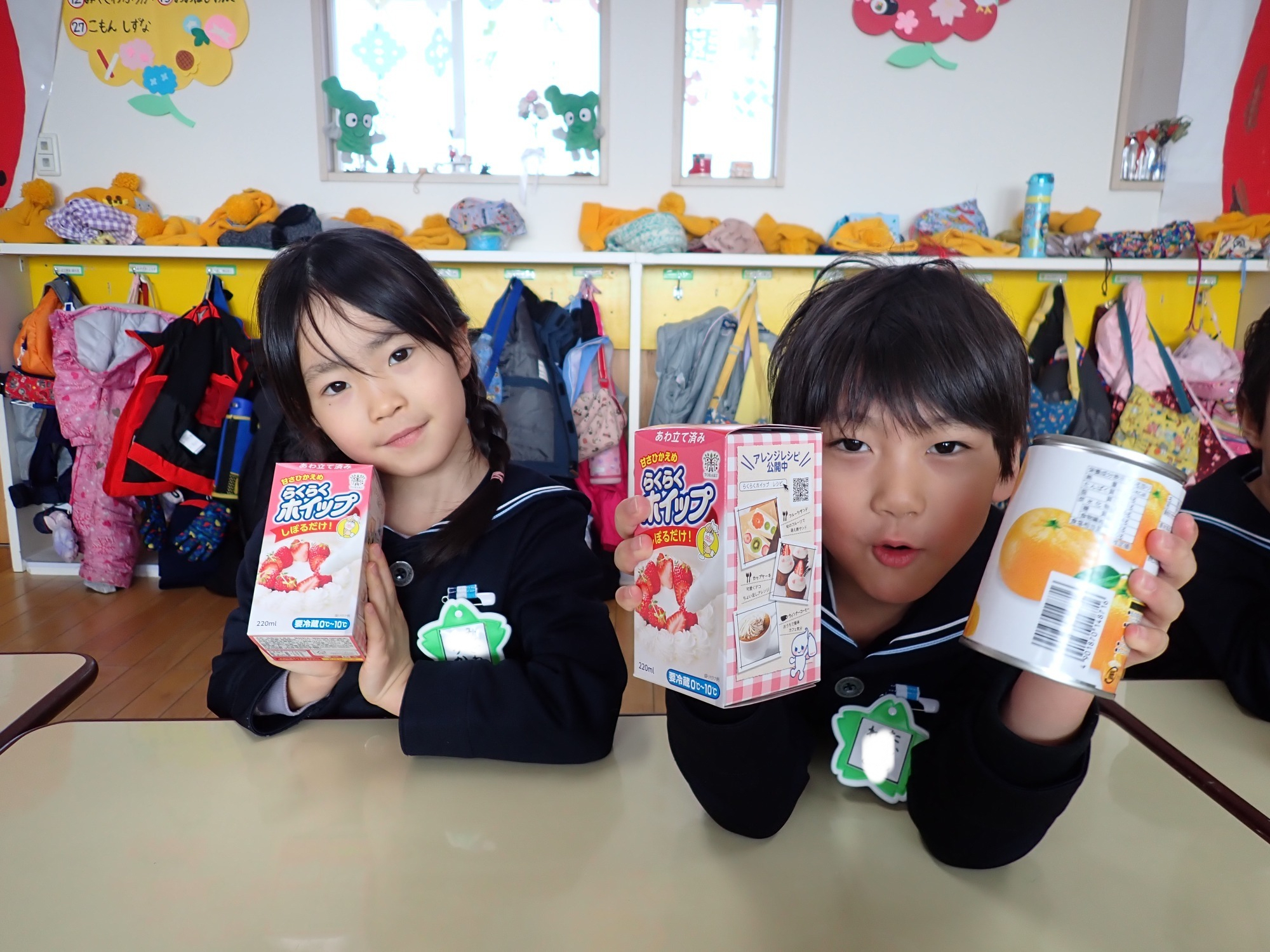 23日は旭川幼稚園の58回目の創立記念日です。子どもたちは「58歳の幼稚園のお誕生日」と、言っています。明日は、幼稚園はお休みなので一日前ですが、みんなでお祝いしました。先代の理事長先生が作ってくださった「ようちえん おめでとう」の歌をみんなで歌ったり、プレゼントを見ました。最後には、お祝いのケーキを食べました。「フワフワだね!」と、パクッ! クリームがほんのり甘くて、おいしかったです。