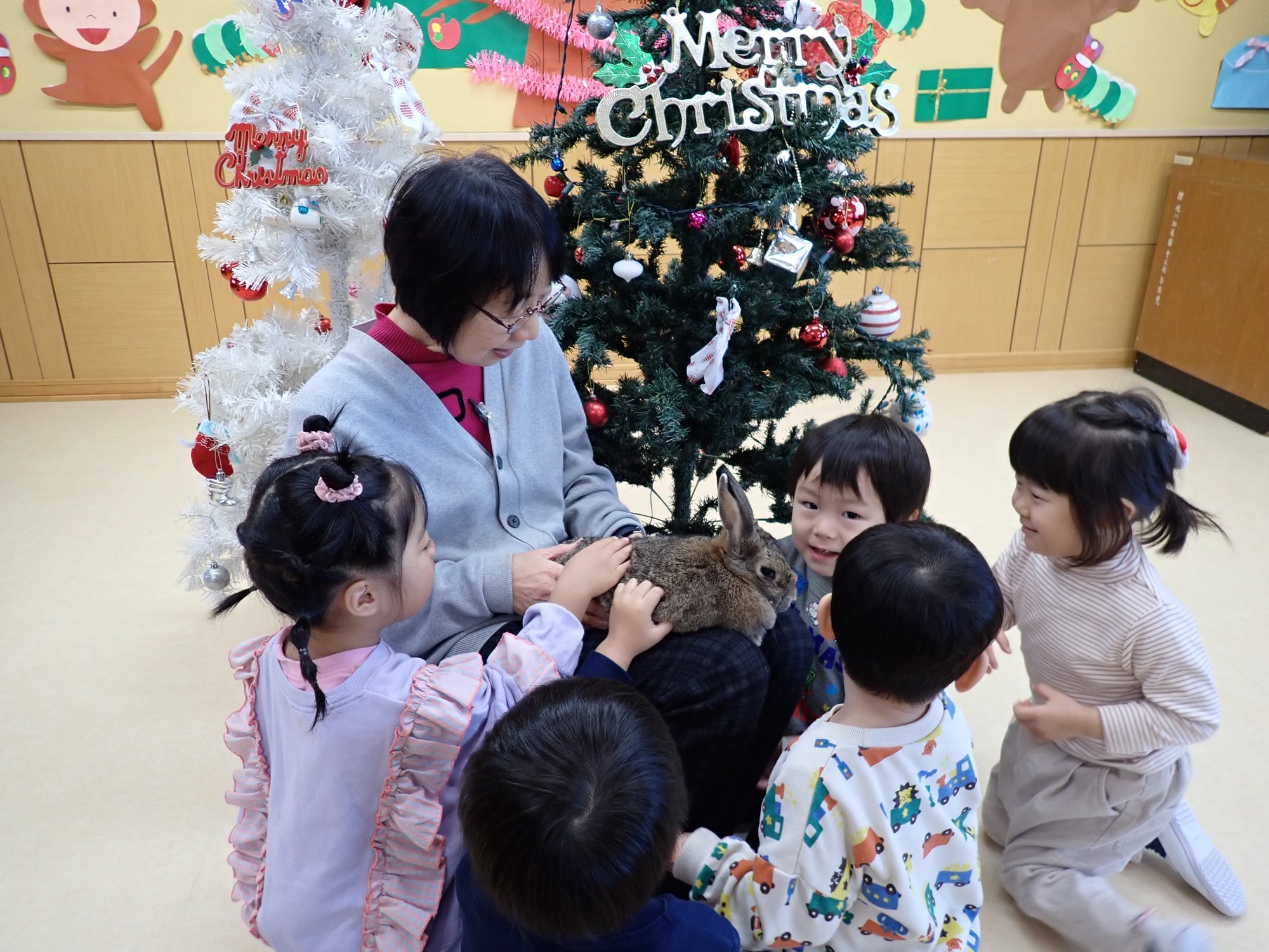 みんなで集まって園長先生のお話を聞きました。その後は、一人ひとり、自分のお道具箱の掃除をしてきれいに整理をしました。ピカピカで気持ちの良い年を迎えられますね。うさぎさんとも、冬休みの間、お別れです。「元気でね」、「ここちゃん、よいお年をね」と、話しかけました。