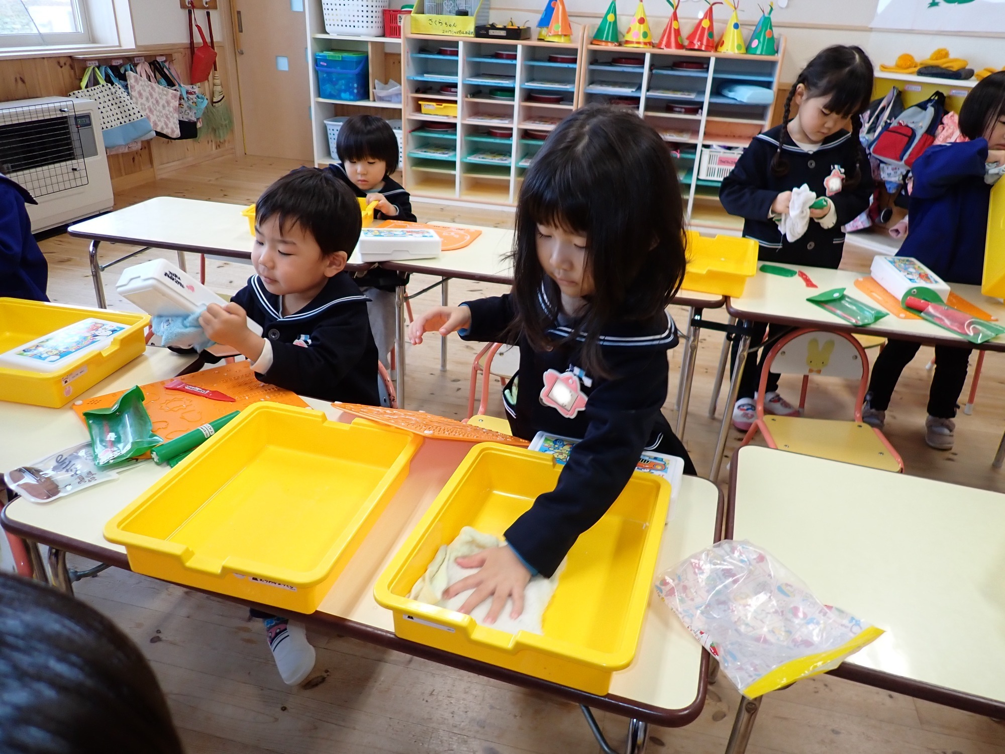 今年度から始まった「学びの時間」。年長組が文字や数を系統づけて、また科学的に1年間を通して学んでいきます。今日は、初めてでちょっぴり緊張したけれどしっかりと取り組んでいました。座る姿勢や鉛筆の持ち方から、線あそびへとつながっていました。興味深く、先生のお話を聞いていました。きっと集中力や根気強さも身につくことと思います。