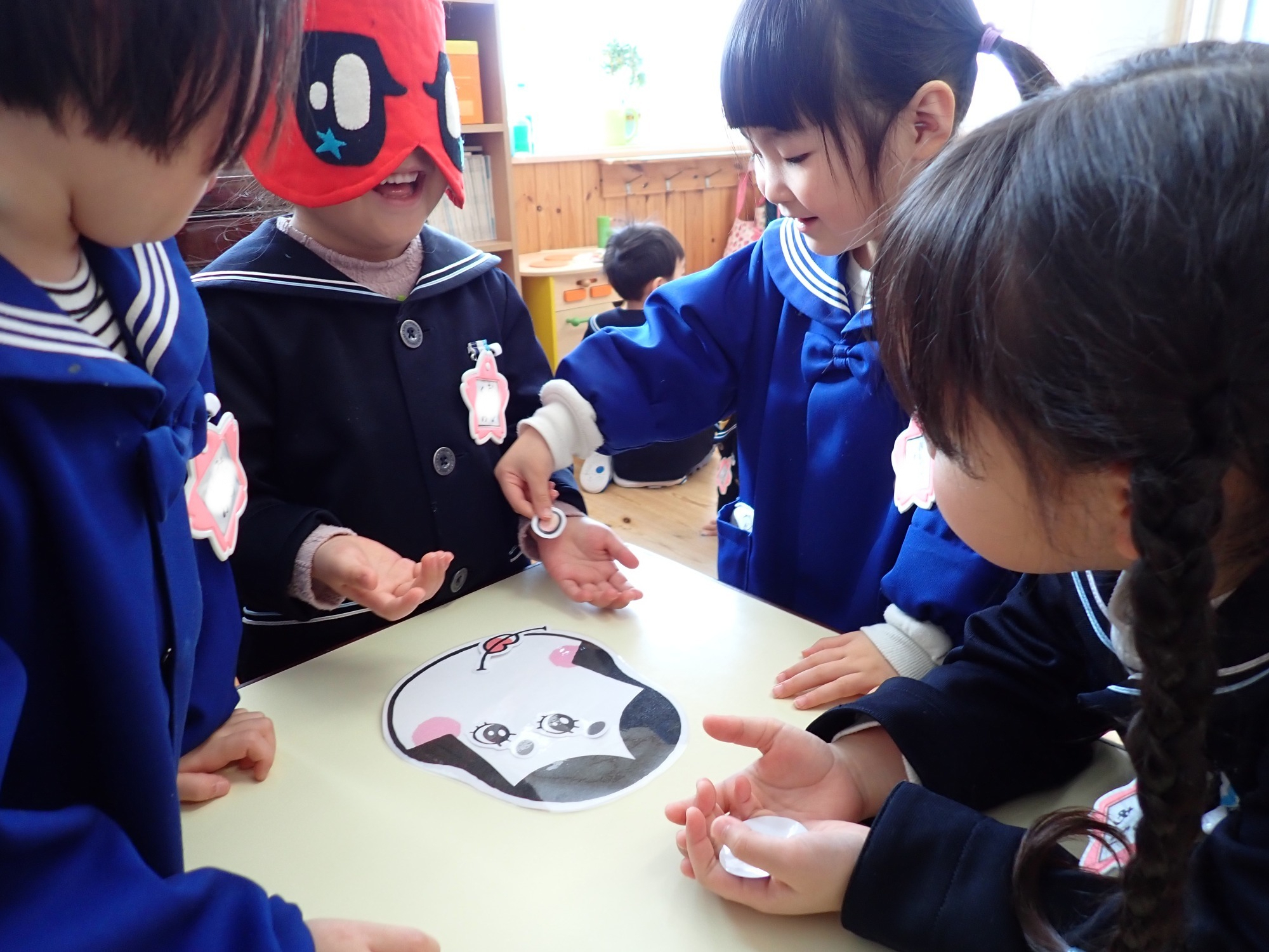 もうすぐ節分。幼稚園にもちらほらと“オニ”が見られるようになってきました。