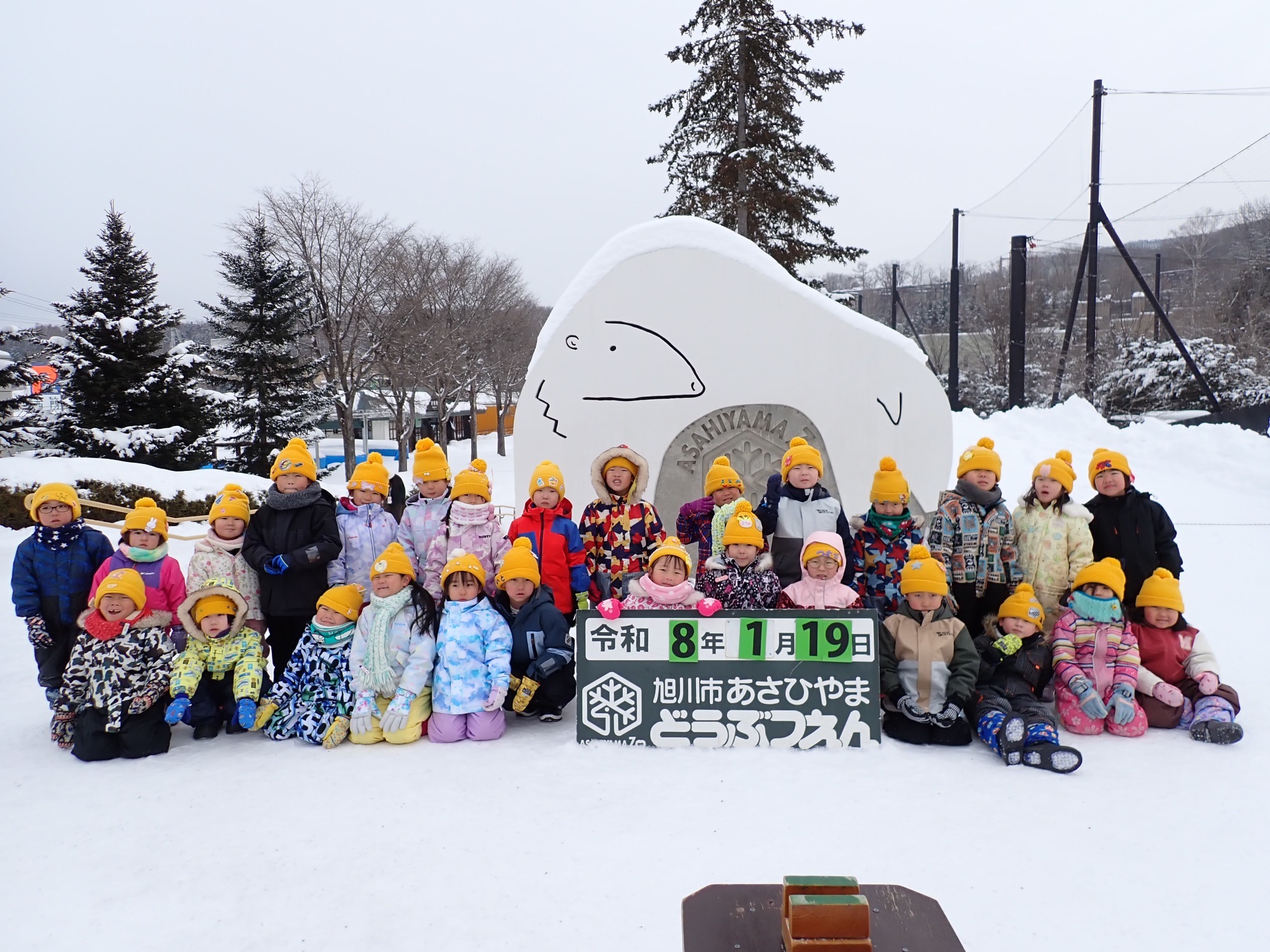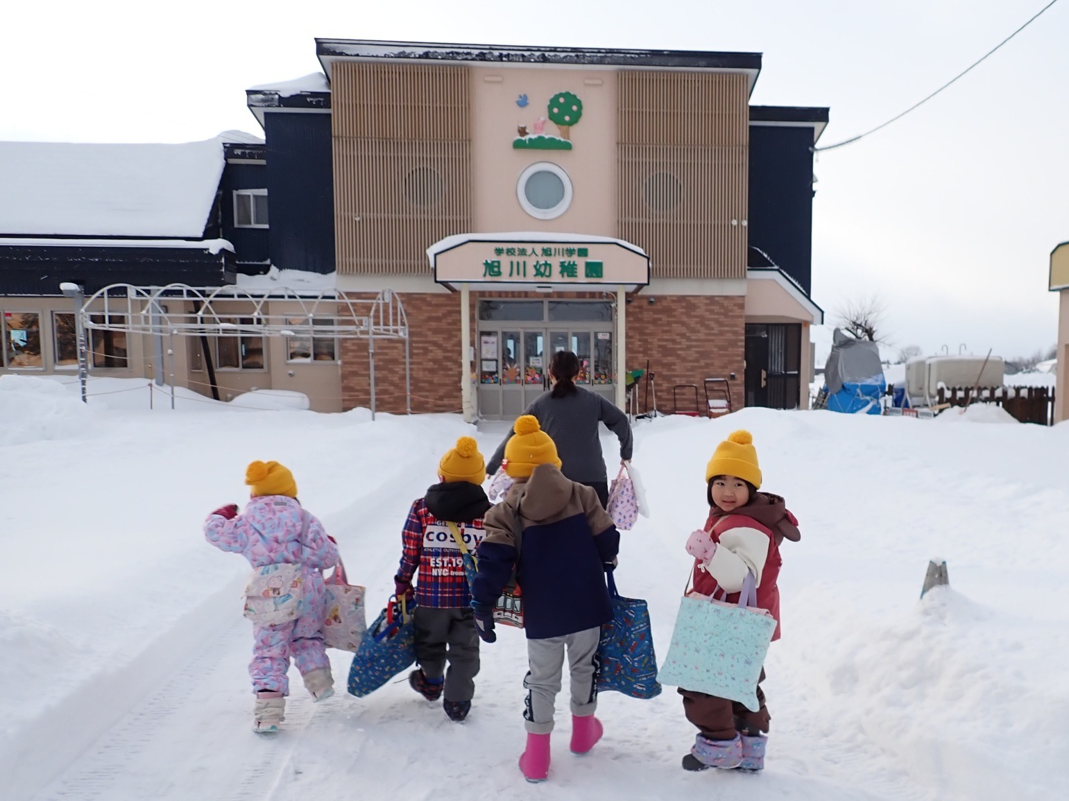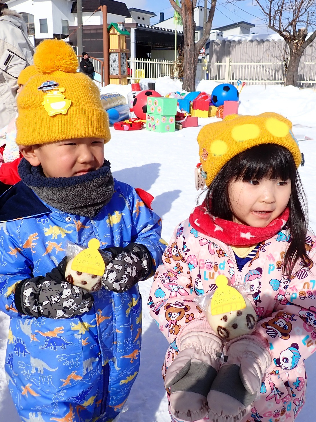 子どもたちは、今日の運動会をとても楽しみにしていましたよ。おうちの方に来ていただき、嬉しい様子がたくさん見られました。ちょっぴり、甘えたくなってしまうこともありましたが… それも大きくなったら良い思い出になるのではないでしょうか。今日のおみやげは、「シマエナガパン」です。みんなとお揃いの黄色い帽子をかぶって「かわいいね!」 おうちでおいしく食べたことでしょうね! 冬の運動会のテーマの通り、冬が大好きな旭川幼稚園の子どもたちです。