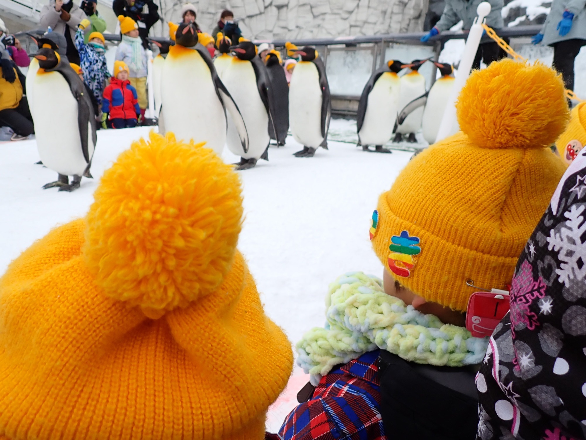 ペンギンがお散歩している姿を見て、大喜びの子どもたち。「かわいい!」と声が聞こえました。
