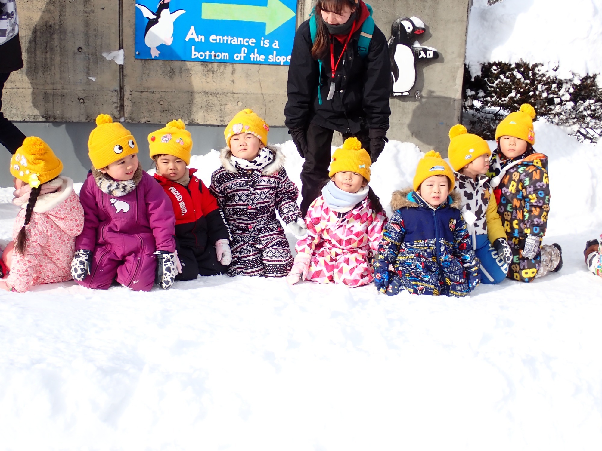 今日は、とても良い天気の中旭山動物園にお出かけすることが出来ました。子どもたちは、お散歩の様子を見て「小さいペンギンいた!」「かわいいね」と喜んでいました。