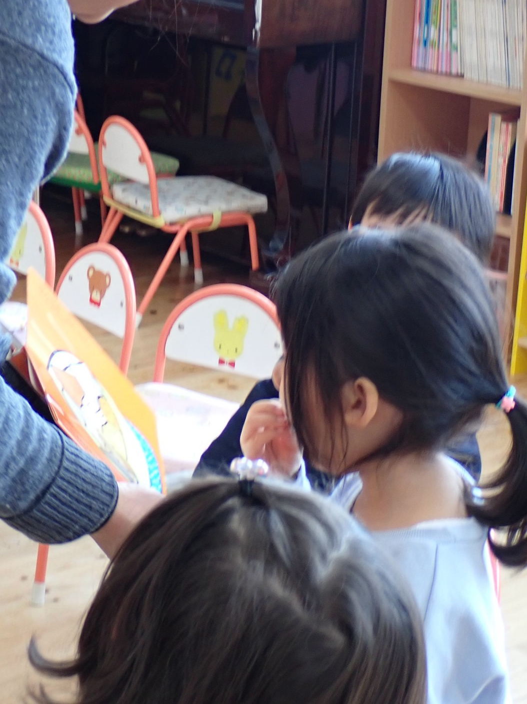 ママ先生が2人、来園してくれました。絵本を読んでくれました。ご家庭でいつもお子さんに読み聞かせている絵本をセレクト。もう1人のママ先生は、エプロンシアターでした。子どもたちとコミュニケーションをとりながら、楽しいひと時でしたよ。「アンコール!アンコール!!」の声に、大型絵本を読んでくれました。ありがとうございました。パパ・ママ先生大募集の幼稚園です。