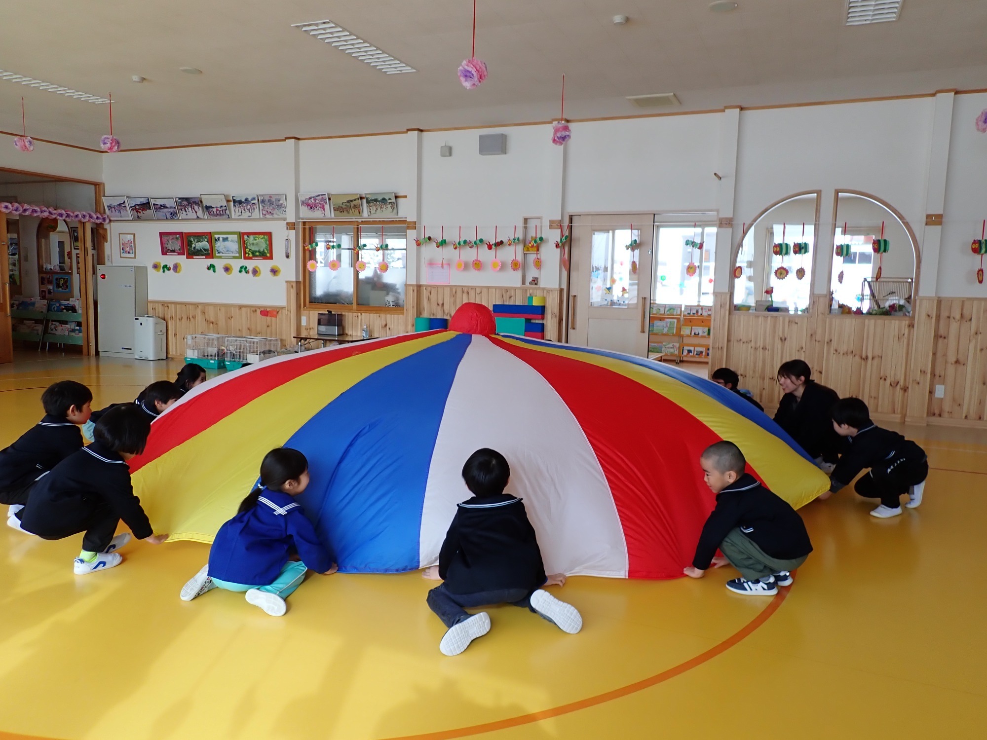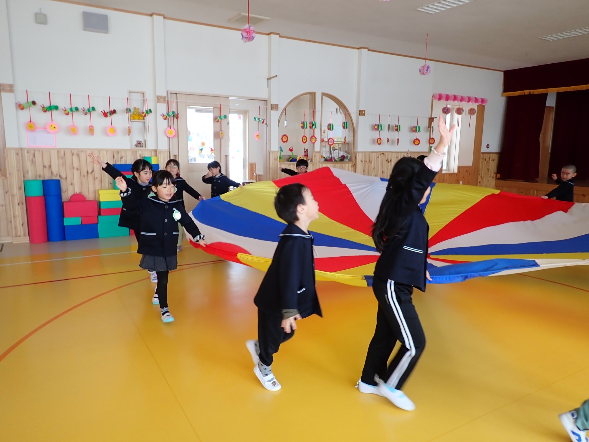 年長組が、バルーンあそびをしました。音楽に合わせて、行進したり、持ち上げたり、左右に動かしたり… 様々な形に変身するバルーンです。上手にできて、満足気な年長組です。達成感も味わうことができていました。いつか、保護者の皆さんに見ていただけたらと、考えている担任です。