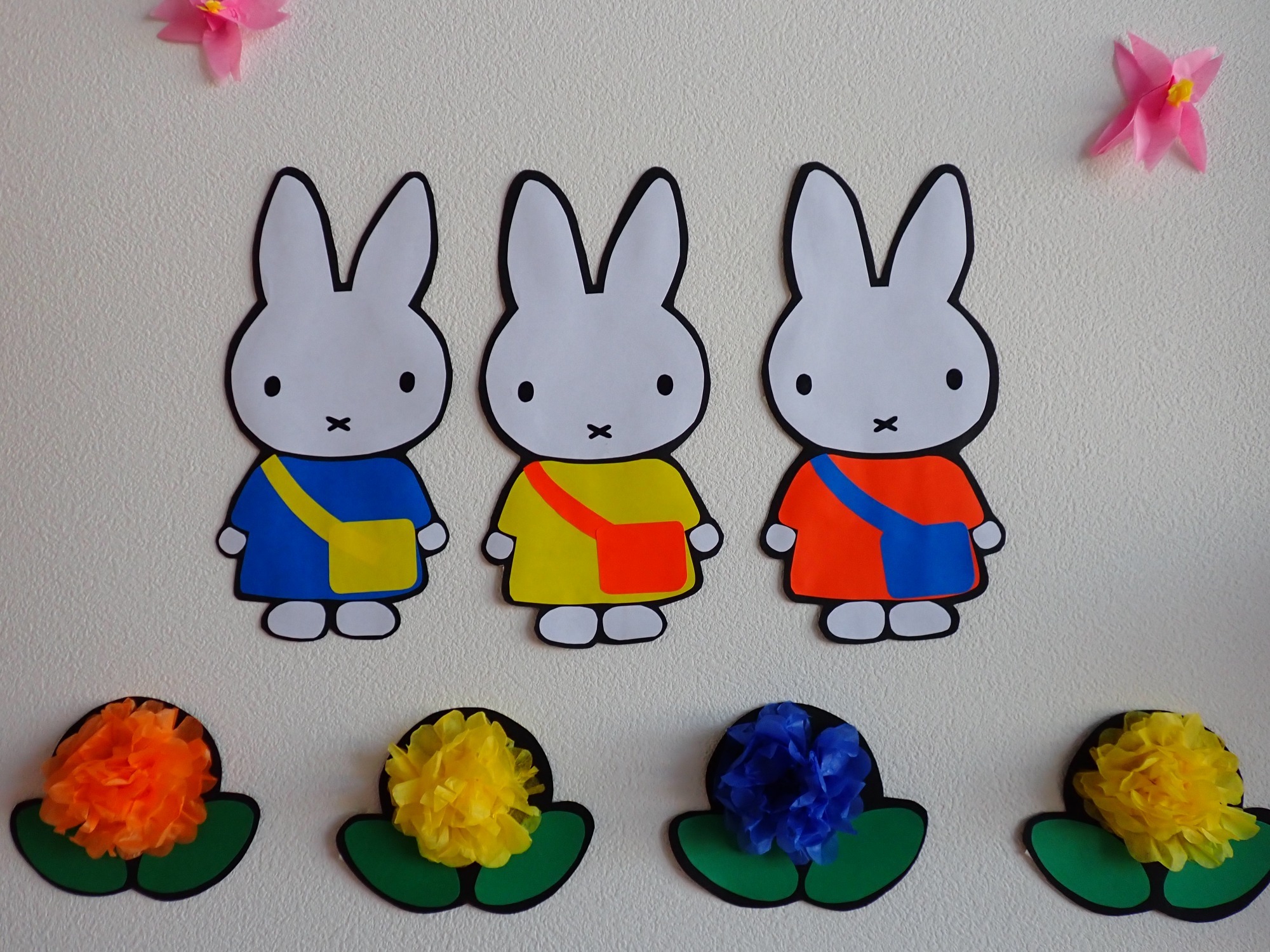 幼稚園は6日が入園・進級式です。準備が整ってきましたよ。今年の保育の主人公は園児の皆さんとうさこちゃん。幼稚園はうさこちゃんでいっぱいになりました。花壇のクロッカスもかわいい顔を見せてくれています。これからもたくさんの花々が、咲いてきます。さあ、6日はみんなでお祝いしましょうね! どうぞお気をつけてお越しください。